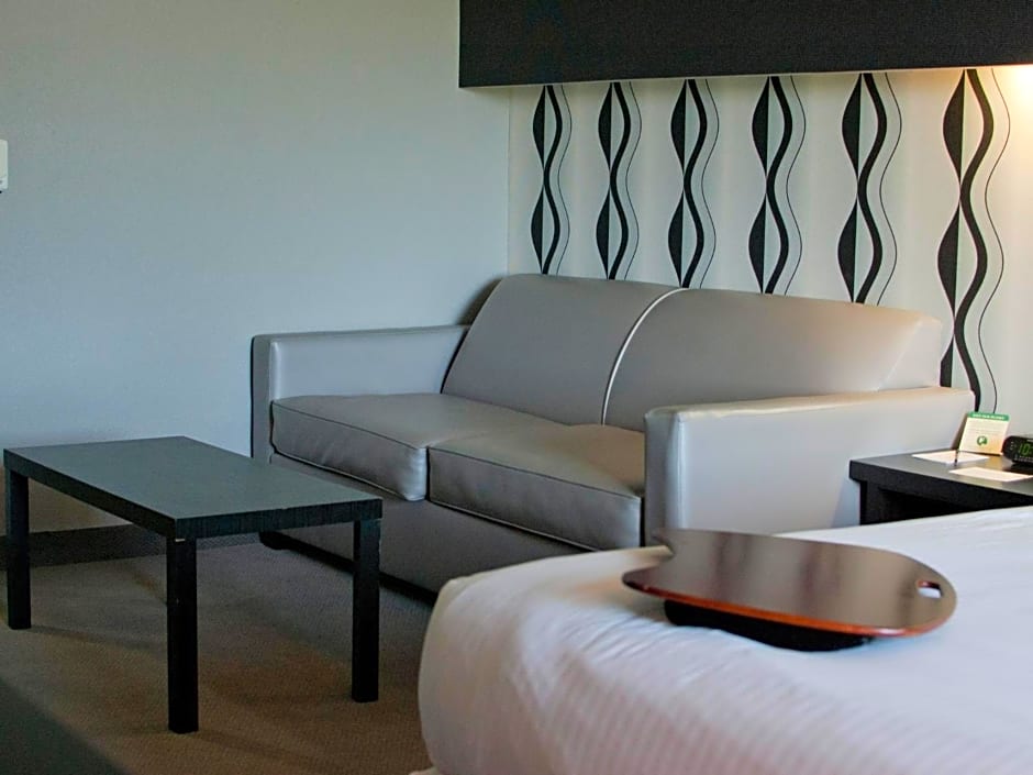 A 37-inch flat-screen cable TV and lounge chair are included in this accessible studio, along with a microwave, fridge, and coffeemaker.
